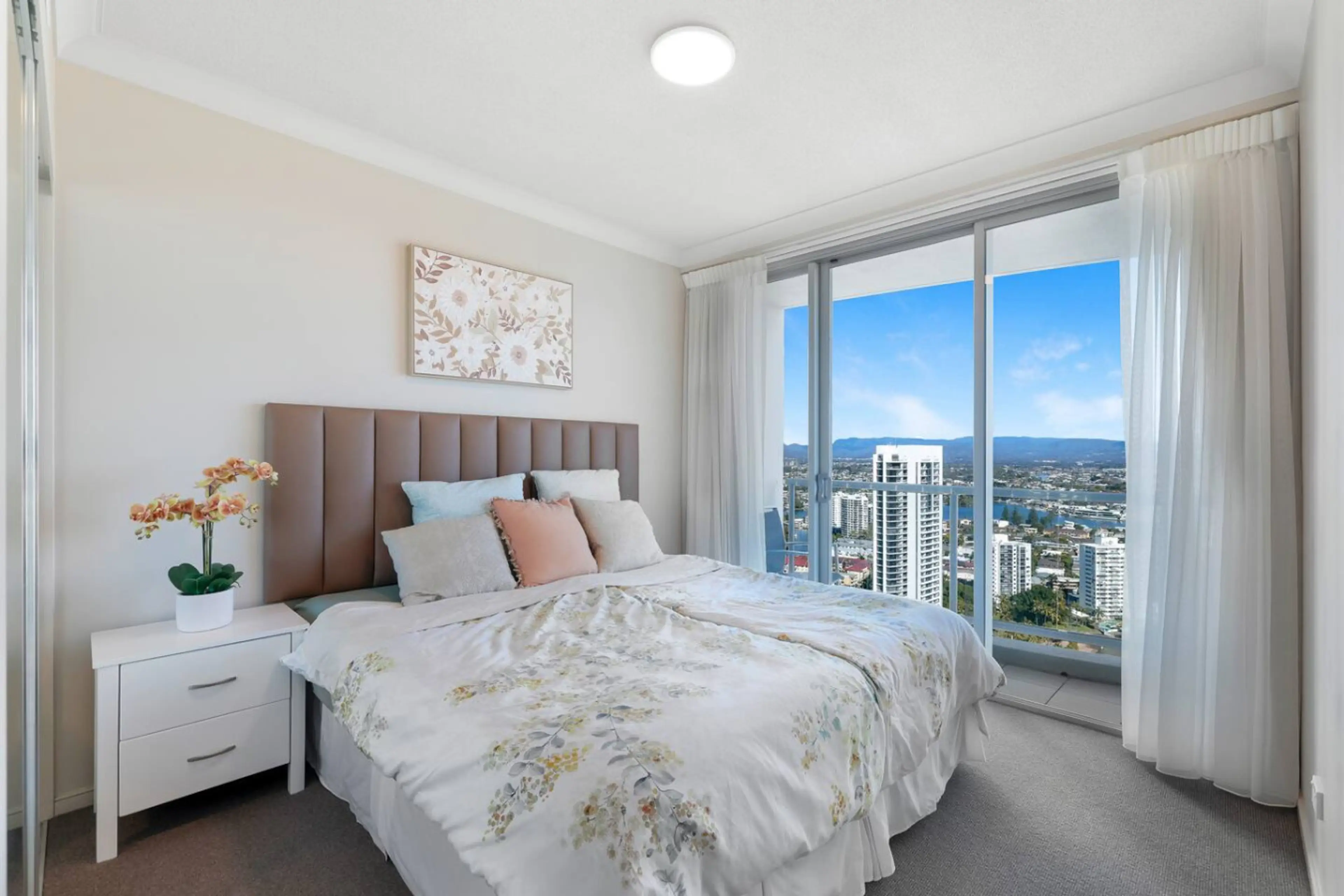 Wake up to breathtaking ocean, river & city views from this stylish 2BR apartment in Mantra Chevron Towers. Relax on the balcony at sunset, cook in the modern kitchen, or unwind in the lagoon pool or Spa. With beaches, restaurants & nightlife just steps away—and the light rail at your door—this retr...