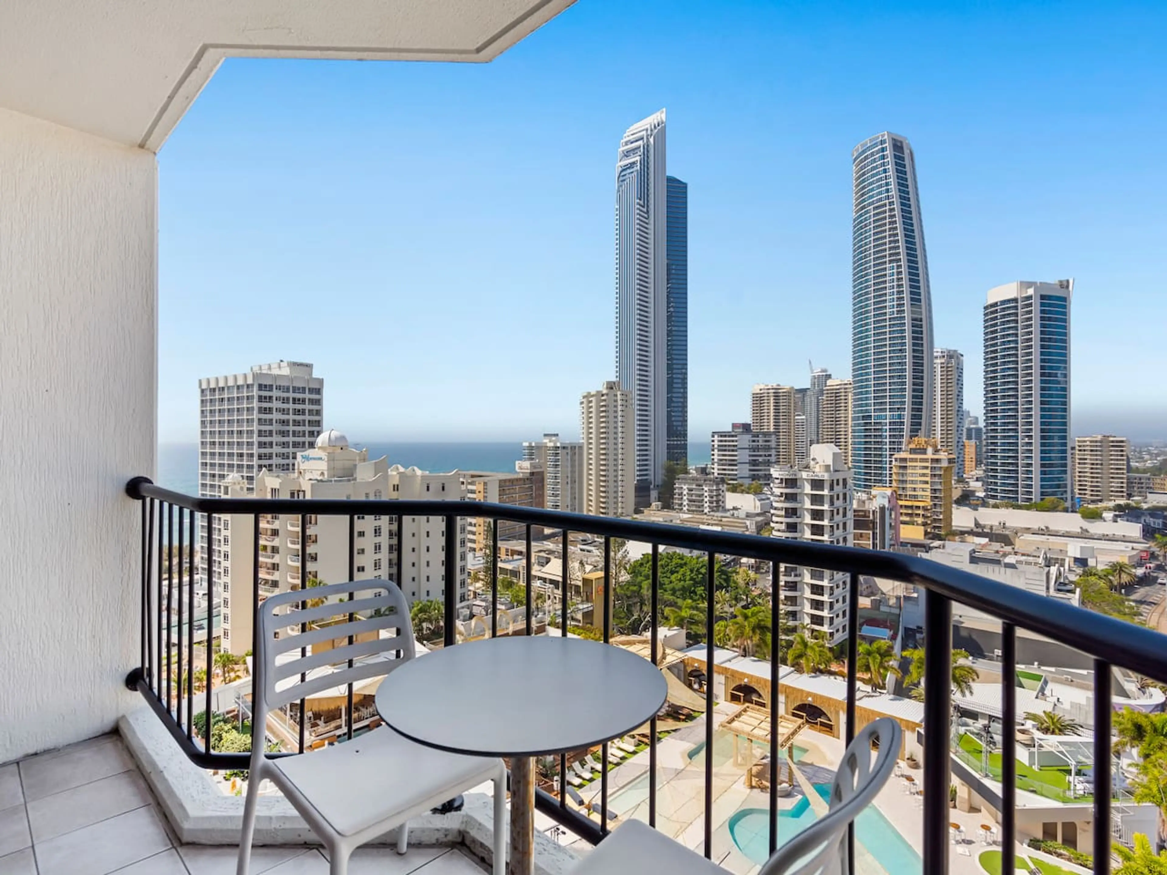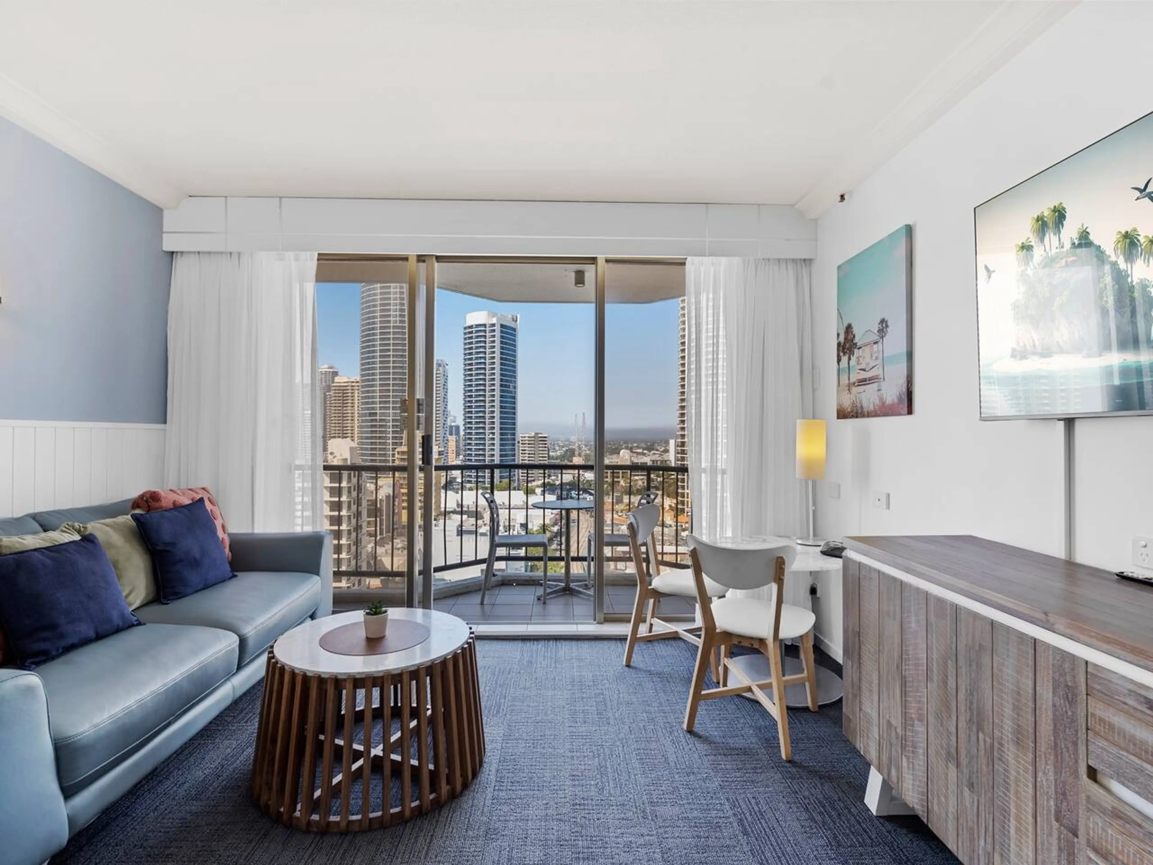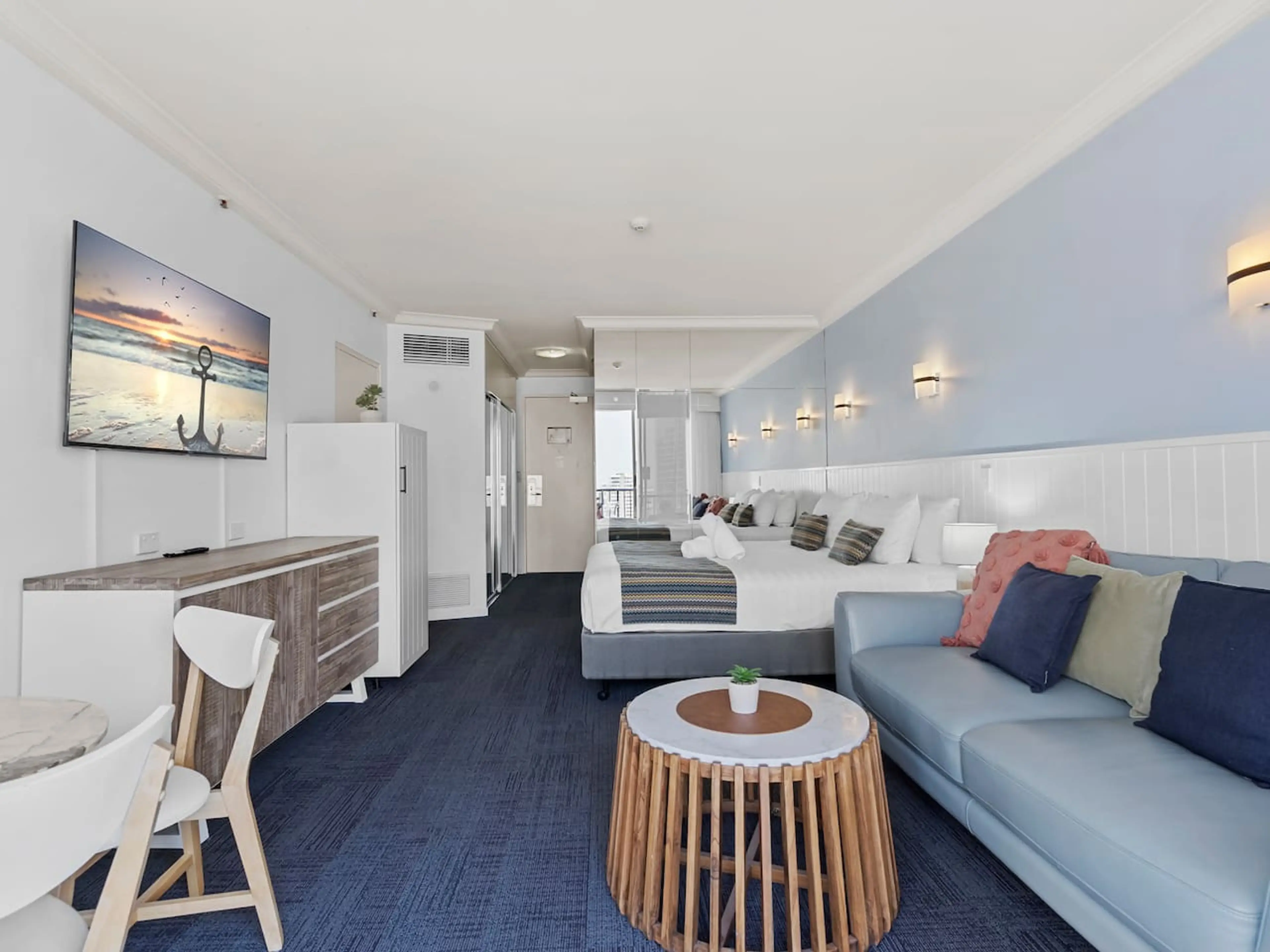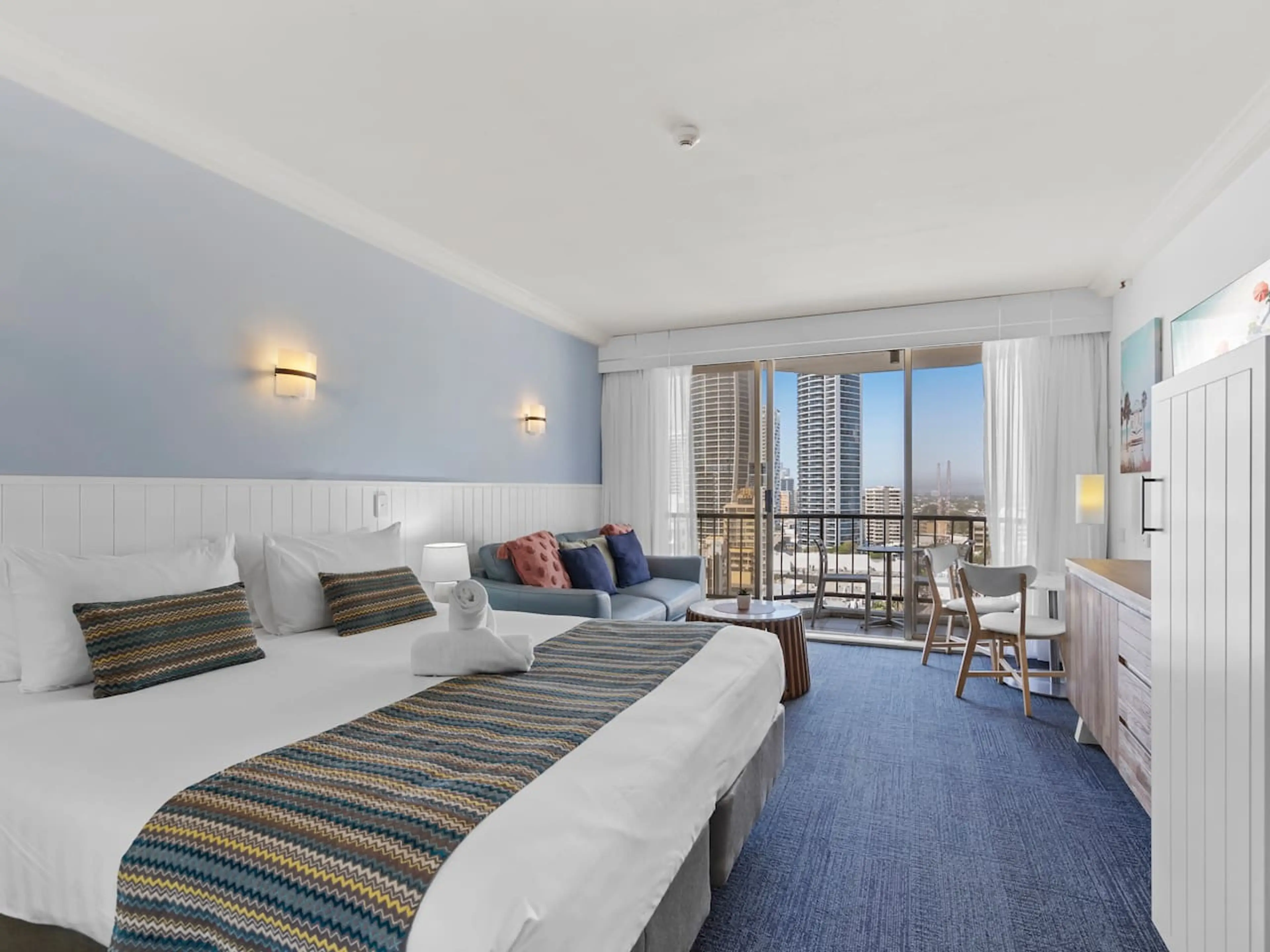 Stay in the heart of Surfers Paradise at Mantra on View, overlooking the iconic Cali Beach and only steps from Cavill Avenue and the golden sands. This stylish one-bedroom studio offers a king bed, private balcony with ocean views, air-conditioning, and a modern bathroom. Enjoy resort-style amenitie...