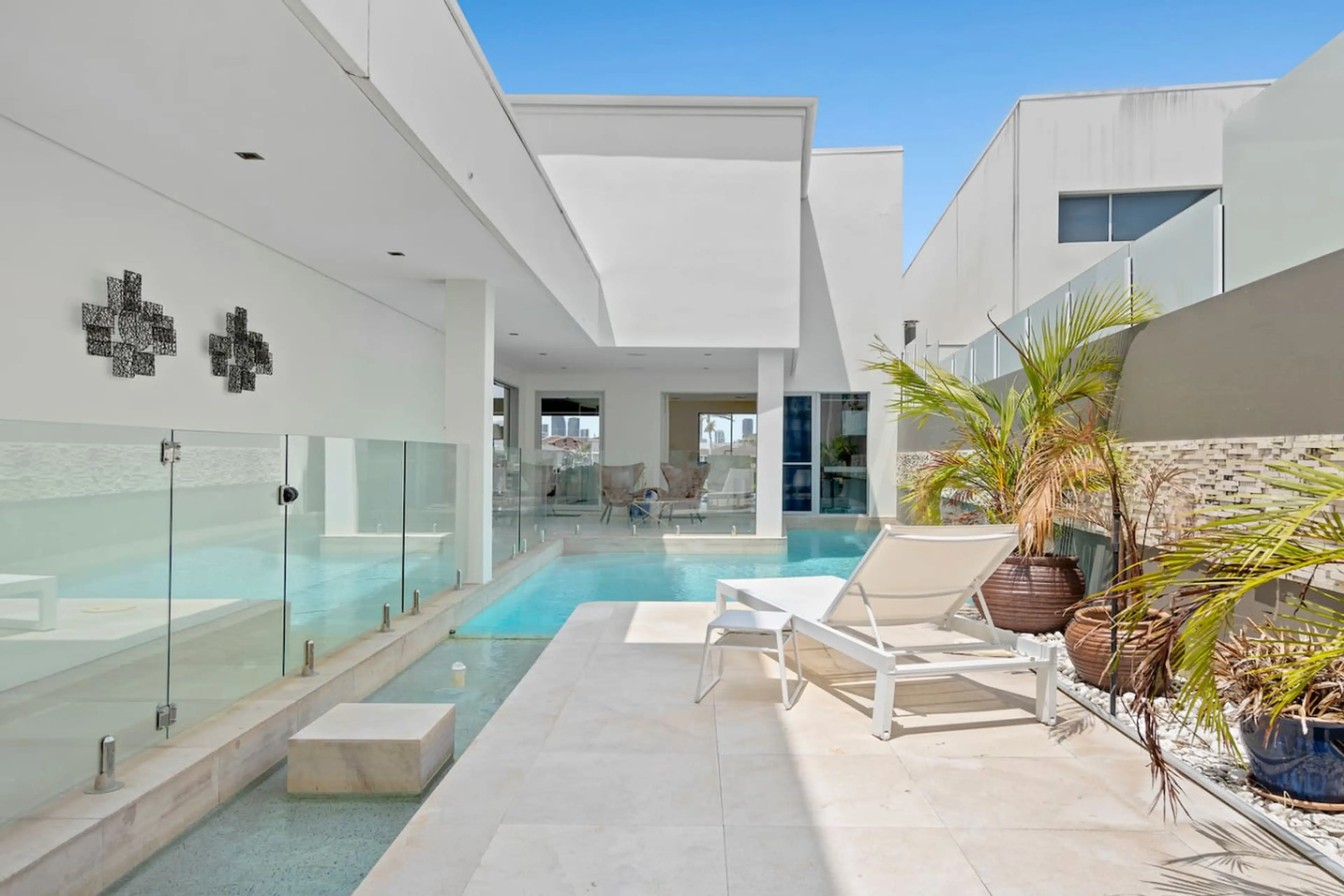 Welcome to a rare luxury haven 🌟. Enter to a stunning waterfall pool. The vast lounge, dining–fully equipped kitchen frames serene river views, plus a private pontoon. Upstairs: 3 bathroom and 3 beautiful bedrooms + office. Master has a giant dressing room and an ensuite with shower & bath. . ...